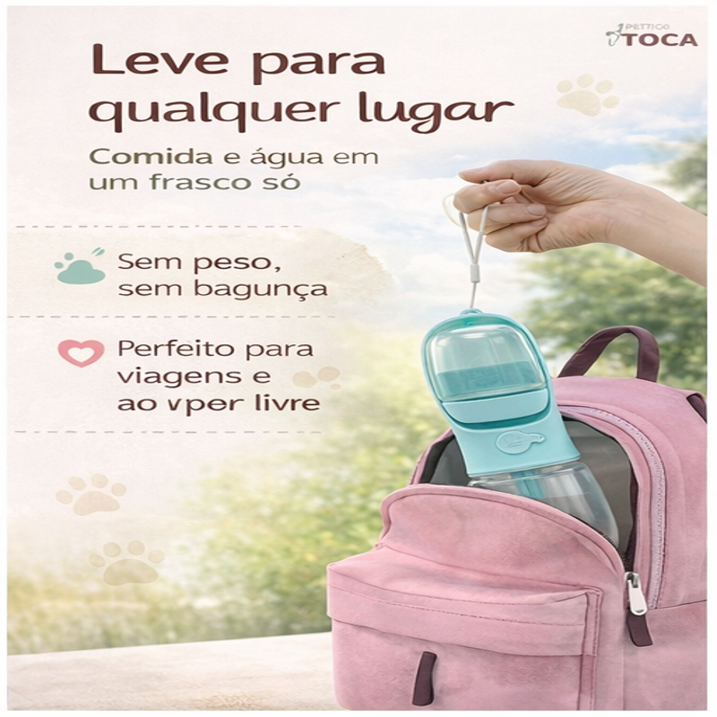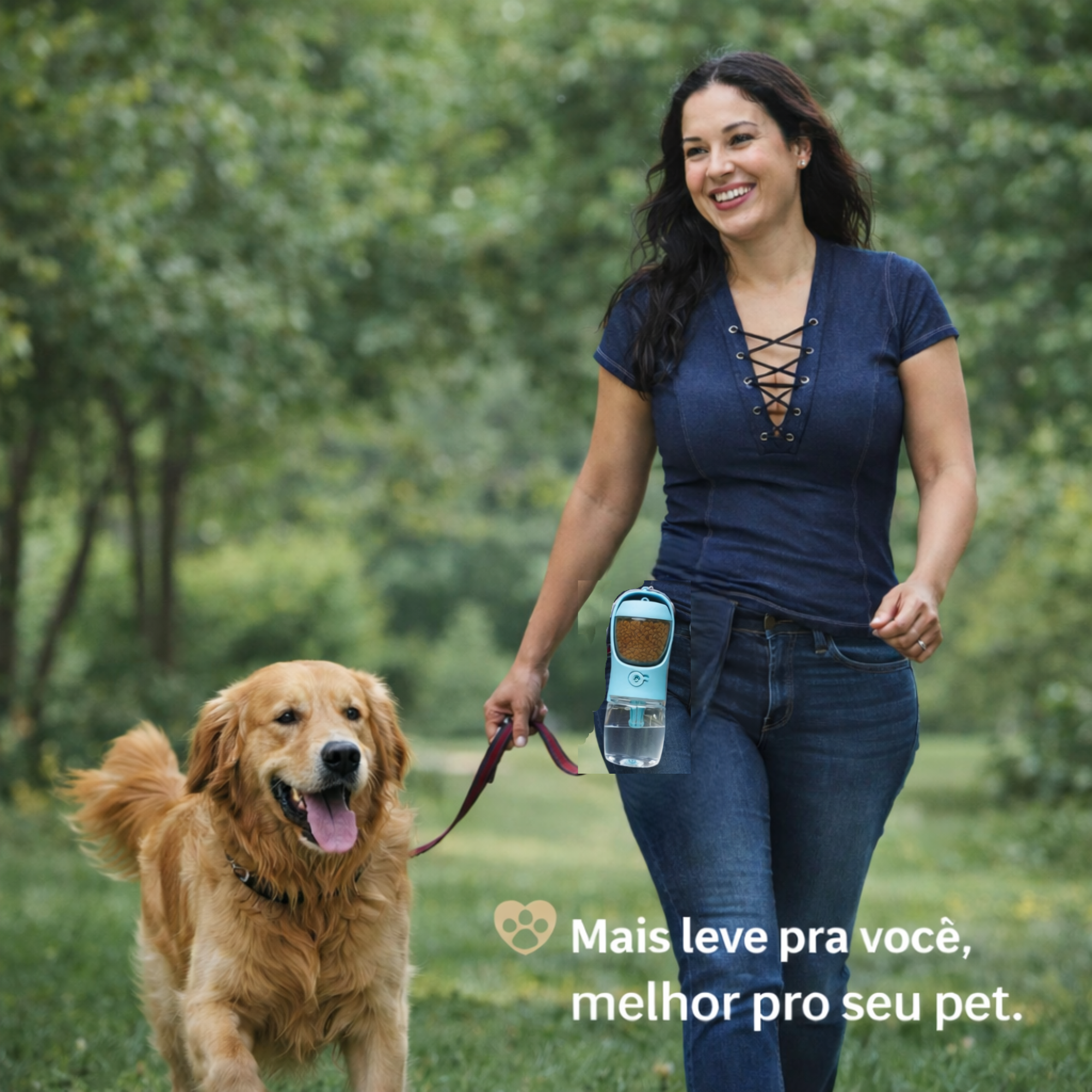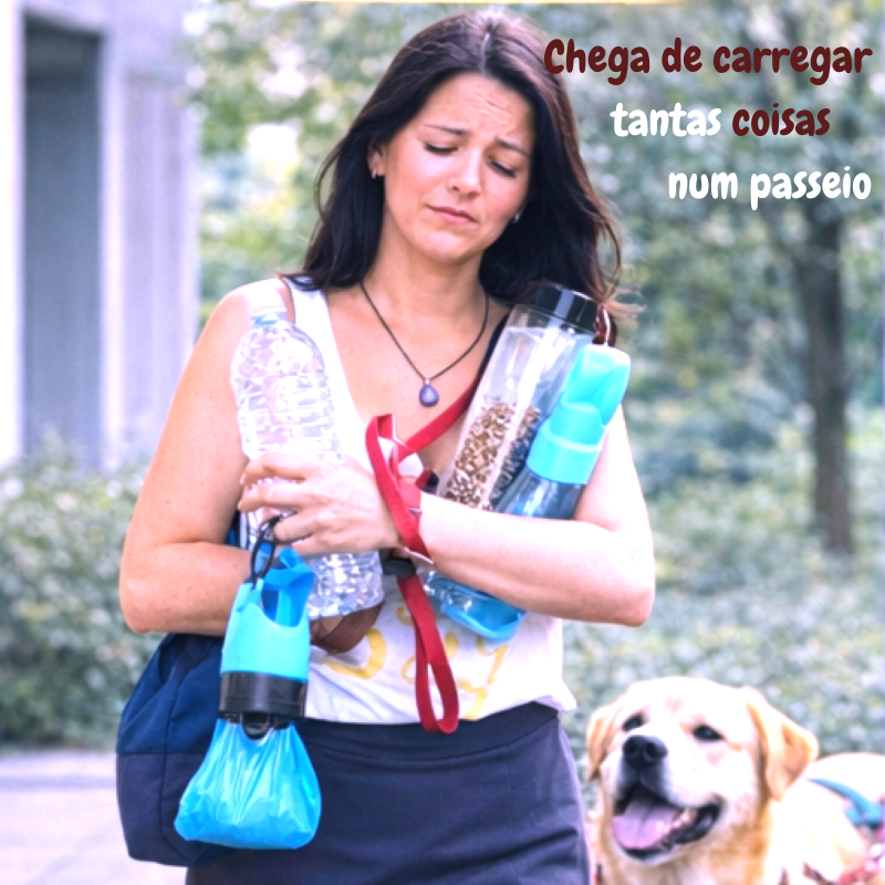 Se você já saiu com seu pet carregando pote, garrafa e ração separadamente… sabe como isso é desconfortável.