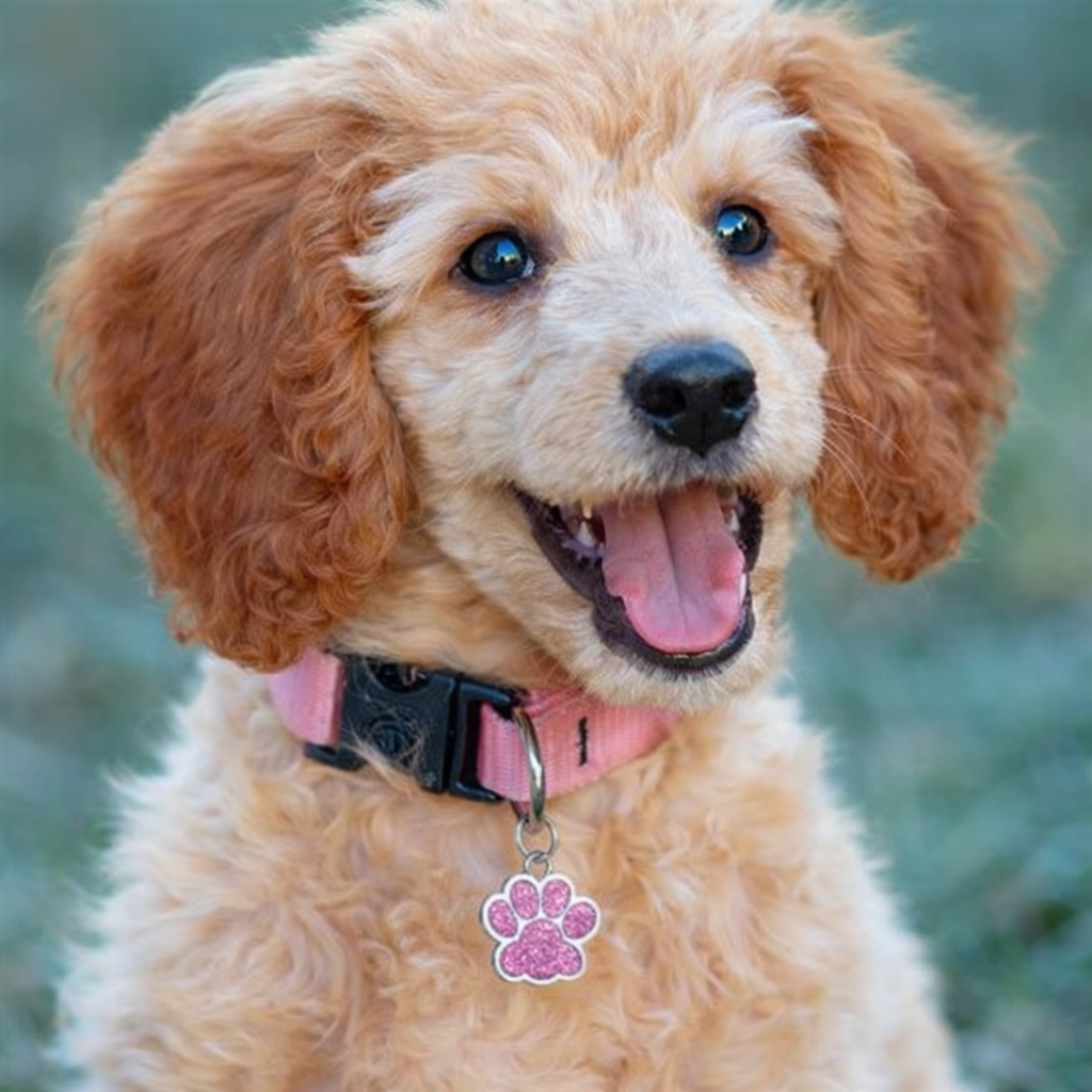 Deixe seu pet mais seguro e estiloso com o GlowPet Tag – Pingente de Identificação com Glitter.