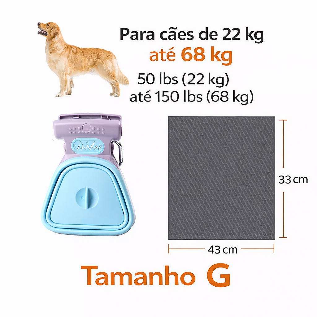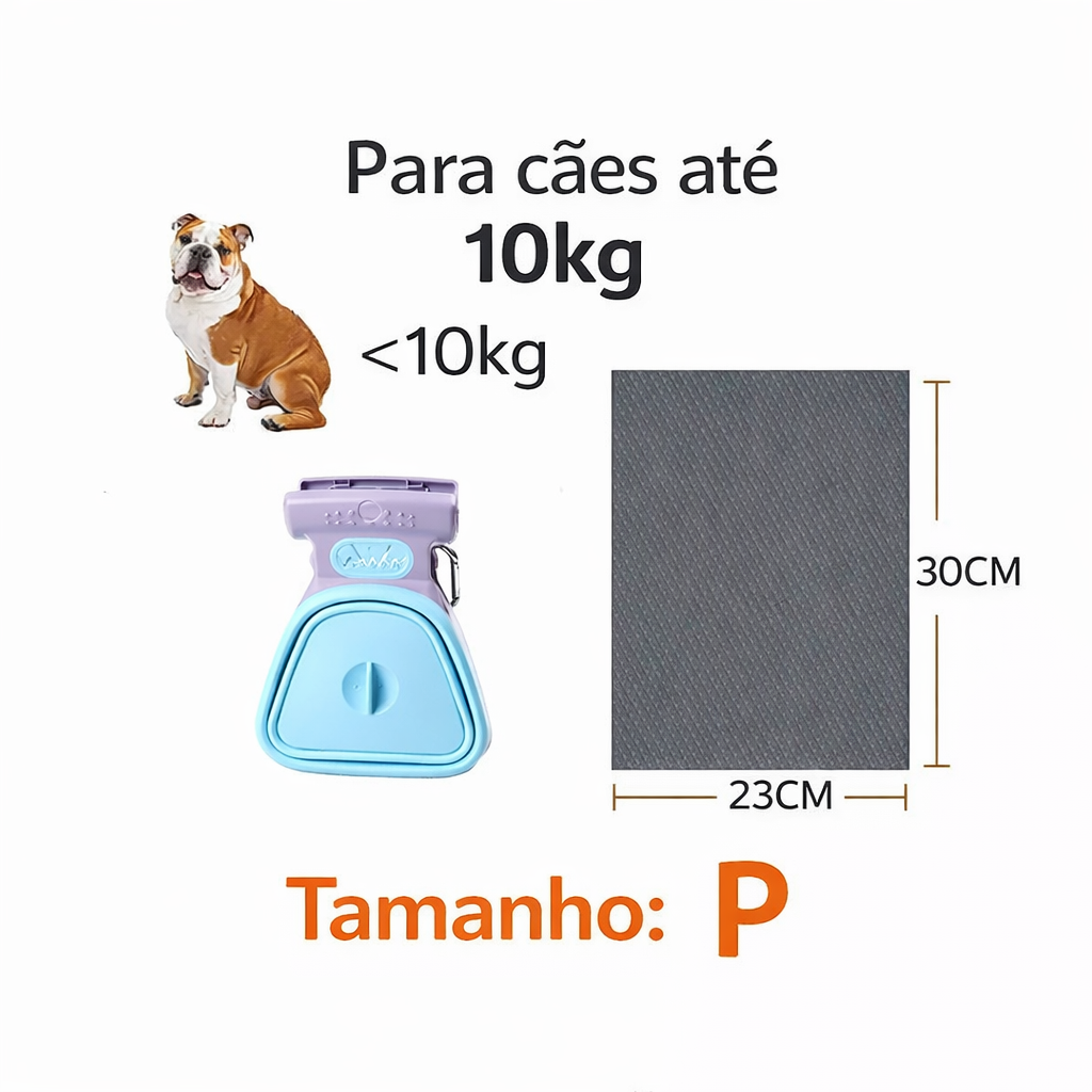 Seu design dobrável economiza espaço e facilita o transporte durante os passeios. Além disso, acompanha rolo de sacos higiênicos, tornando o processo de limpeza rápido, seguro e muito mais conveniente para tutores que gostam de manter os ambientes sempre limpos. 🐶💛